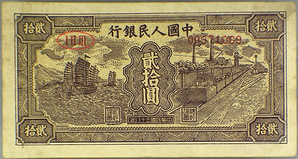 CHN822 - 1949年中国人民银行贰拾圆帆船火车